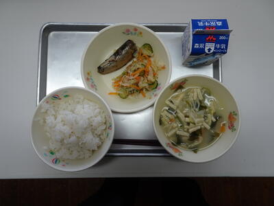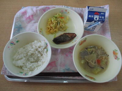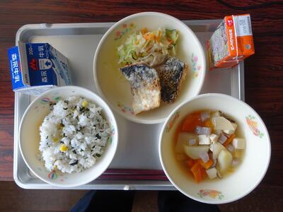まごわやさしい献立で、和食が並びました。また、今日は「海苔の日」ということで、味付け海苔をほかほかご飯といっしょにいただきました。海に囲まれた日本では、海苔は貴重な食品でした。大宝律令には、租税として納められていたと記されているそうです。
