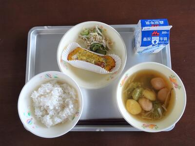 今日のメニューは、食パン、コーンポタージュ、ホキのカレー南蛮、コールスローサラダです。暑さに食欲も落ちてくる季節です。今日は白身魚にカレー味をつけてあり、食欲がわいてきます。