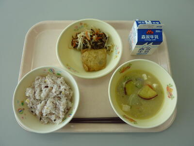 「さつま汁」「信田煮」「もやしときくらげの和え物」「雑穀ご飯」でした。