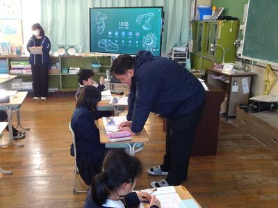 初任者研修の一環で、3年生の中村先生の授業を参観しました。授業では、「僕のコントローラー」という教材を読み取り、節度ある行動や節制の大切さについて、子どもたちなりに考える姿が見られました。続いて、一人ひとりが自身の“心のコントローラー”を上手に働かせることができた経験を振り返り、「食べたいものがあったけれど、兄弟がいるので我慢しました」「ゲームの時間を決めて守っています」など、具体的なエピソードを全体で発表し合いました。
