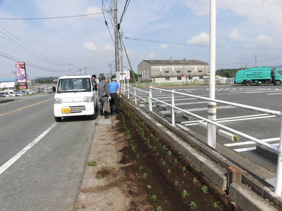 PTA役員のみなさんを含め、30人ぐらいの方が集まって、子馬前、コスモス前、農村プラザ前の花壇に花を植えました。