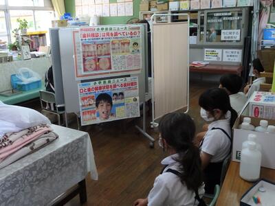学校では、学校保健安全法等に基づき、子どもたちの健康管理の一環として定期の健康診断を行っています。身体測定に始まり、耳鼻科、眼科、内科と続きます。昨日と今日は歯科検診です。検診を受け、歯の健康への意識を高めて欲しいと思います。どの学年も静かに受診ができました。廊下で静かに待つのも勉強です。