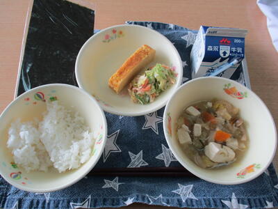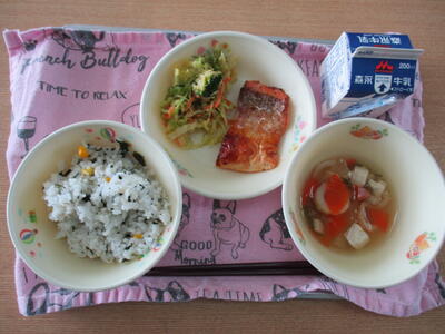 今日は、中華メニューが並びましたが、「豆・ごま・わかめ・野菜・魚・しいたけ。いも」の入った「まごわやさしい」献立でした。7つの食材を見つけることができましたか。