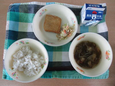 今日は、子どもたちに大人気の揚げパンでした。ALTのシェイ先生も「おいしいです!」と大人にも好評です。一つ一つ手作りをしていただいているからこその美味しさがあります。ごちそうさまでした。
