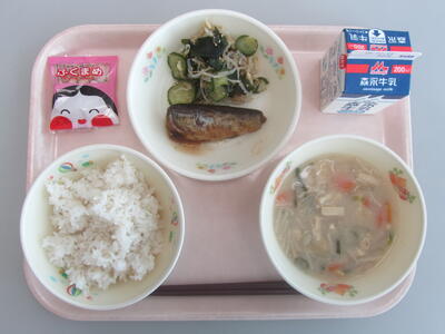 本日のメニューは、麦ごはん、牛乳、高野豆腐のみそ汁、いわしの梅煮、わかめのあえもの、節分豆です。今日は「節分」です。節分とは、もともと「季節を分ける」という意味を持つ言葉で、四季(春・夏・秋・冬)の変わり目を表す日を指します。現在では、春の始まりである「立春」の前日を節分とするのが一般的です。昔から節分には、季節の変わり目に起こりやすい病気や災い(邪気)を払い、無病息災を願うために、豆まきや恵方巻きを食べるなどの風習が受け継がれてきました。日本の伝統行事に親しみながら、今日も感謝の気持ちをもって美味しくいただきましょう。
