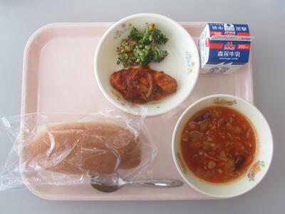 本日のメニューは、コッペパン、牛乳、ミラノ風ミネストローネ、オムレツのきのこソース、五色サラダです。ミラノ風ミネストローネは、イタリアの家庭で親しまれている野菜たっぷりのスープです。「ミネストローネ」という名前は「具だくさんのスープ」という意味で、季節の野菜や豆、パスタなどがたっぷり入り、栄養満点の料理として知られています。来週から始まる冬季オリンピックを楽しみにしながら、世界に思いをはせて、美味しくいただきましょう。