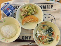 今日は、ささみのレモン漬けとかき玉汁でした。