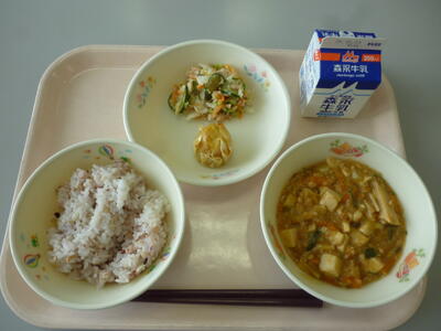 「マーボー厚揚げ」「パリパリ春巻き」「もやしときくらげの中華あえ」「麦ごはん」でした。
