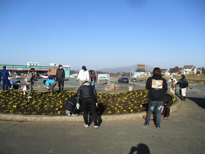 今回は、2年生の保護者の方々や児童が参加し、国道花壇の草取りや花がら摘みを行いました。花壇にはうっすら霜が降りていましたが、たくさんの子どもたちが元気な声を弾ませて活動し、保護者の皆様に参加いただいたので、楽しく一気に作業が進みました。皆様ありがとうございました。