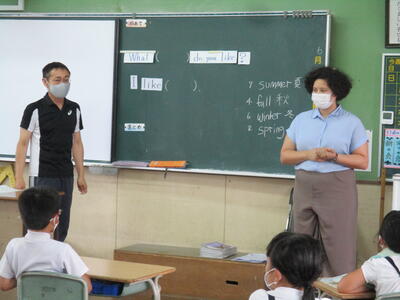 今日は週に1度のシェイ先生の来校日。楽しい英語の学習の日です。5年生たちは教科の名前。ジェスチャーゲーム等に取り組みながら、繰り返し発音して覚えていました。3年生は、四季や月の表現。シェイ先生の4月「エイプリル」の発音が「エプロン」に聞こえて、あれれ?と笑いだしてしまいました。みんなで楽しく慣れ親しんでいます。