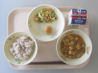 今日のメニューは、麦ごはん、さといものみそ汁、あじさんが焼き、ピーナッツあえです。「今月のみそ汁」は9月から12月が旬の「さといも」を使っています。縄文時代の主食はさといもだったと言われており、大昔から日本人の命を支えてきた食べ物と言えます。旬のさといも、美味しくいただきましょう。
