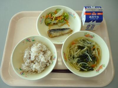 本日のメニューは、雑穀ごはん、牛乳、魚そうめん汁、さんまのゆずみそ煮、白菜の甘酢あえです。和食のおいしさの決め手となるのが「出汁(だし)」です。給食センターでは、素材の持ち味を大切にしながら、メニューに合わせて毎日ていねいに出汁をとっています。今日は、「いりこ」と「かつお」からとった風味豊かな合わせ出汁を使った魚そうめん汁です。うま味がぎゅっと詰まった、やさしく奥深い味わいに仕上がりました。素材の味を生かした和食のおいしさを、ぜひ味わっていただきましょう。
