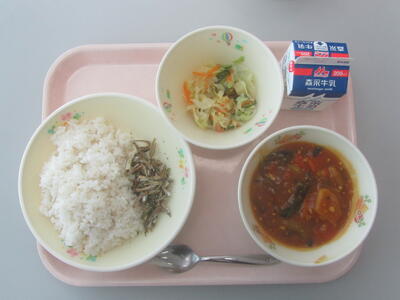 本日のメニューは、麦ごはん、牛乳、冬野菜のカレー、青のりマヨいりこ、キャベツとパインのサラダです。冬野菜にはビタミンやミネラルが豊富に含まれており、免疫力を高め、風邪やインフルエンザの予防にも効果が期待できます。今日のカレーには、冬が旬のほうれん草・人参・大根をたっぷり使用しました。それぞれの野菜の甘みと旨みが溶け込んだ、体が温まる一品です。栄養バランスのとれた冬野菜のカレーを、ぜひ美味しくいただきましょう。