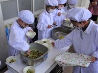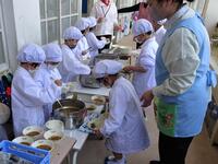 入学して、一ヶ月が経過し、自分たちで給食の準備に取り組んでいます。給食室から教室まで、重い食缶を運び、皆の分を上手に配膳する子どもたち。日々、成長しています。