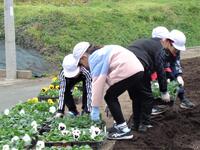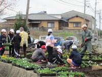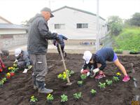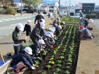 3年総合「花いっぱい活動」  国道の花壇にパンジーを植えました