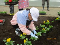 少し遅くなりましたが、木曜日(12月5日)、花づくり委員会の皆さんと一緒に国道沿いの花壇にパンジーを植えました。まだ暑かった9月下旬に種をまき、大きく育った色とりどりのパンジー。3年生のみんなでデザインし、色の配置を考えながら花壇いっぱいに植えました。いよいよ寒くなりますが、花壇にしっかり根づいて、きれいな花を咲かせて欲しいですね。ご指導いただきました花づくり委員会の皆さん、ありがとうございました。