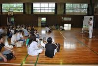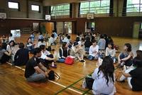 PTA会員で体育館に集まり、給食費の集金のことや登校班の現状と課題について話し合いました。