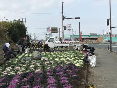 今月は3年生の保護者の方々や児童が参加し、国道花壇の草取りが行われました。寒いなかでしたが、保護者の皆様に参加いただいたので、広い花壇でしたが、作業が進みました。皆様ありがとうございました。