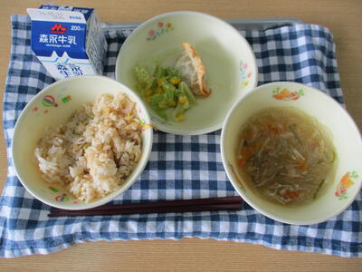 今日は八十八夜。立春から数えて88日目を「八十八夜」というそうです。春と夏の変わり目で、稲の種まき準備や茶摘みのシーズンになります。季節感のある献立、旬の食材がたっぷりの美味しい給食でした。