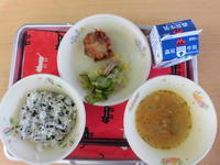 にんじんやゴボウなどたくさんの野菜が入っていましたが、1年生もおいしく食べていました。