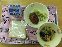 「ほうれん草と卵のスープ」「ハンバーグケチャップソース」「ブロッコリーサラダ」