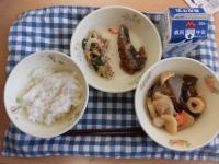 「大豆の五目煮」「ちくわのカレー揚げ」「甘酢和え」