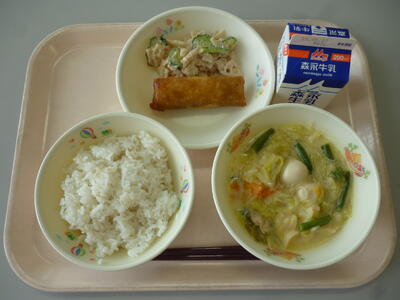 今日のメニューは、麦ごはん、牛乳、ハヤシシチュー、国産キャベツのメンチカツ、にんじんサラダです。ハヤシシチューは、薄切りの牛肉と玉ねぎをデミグラスソースやトマトソースでじっくり煮込み、ご飯にかけて食べる、日本発祥の洋食です。明治時代に「早矢仕(はやし)」さんという人物が考案したことが名前の由来といわれています。コクのあるハヤシシチューに、国産キャベツを使ったメンチカツ、さっぱりとしたにんじんサラダを組み合わせ、栄養のバランスにも配慮した献立となっています。今日は、今年最後の給食です。毎日の給食の時間を振り返りながら、感謝の気持ちをもって、楽しく味わっていただきましょう。