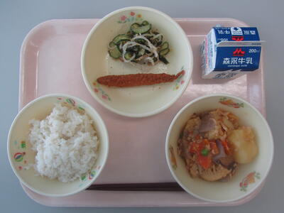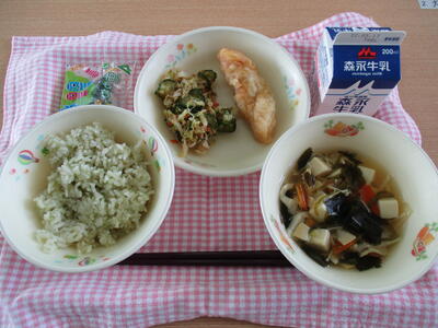 今日は八十八夜。立春から数えて88日目を「八十八夜」というそうです。春と夏の変わり目で、稲の種まき準備や茶摘みのシーズンになります。季節感のある献立、旬の食材がたっぷりの美味しい給食でした。