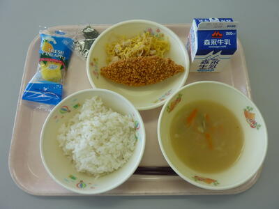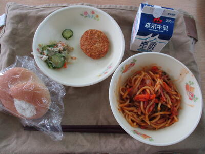 「スパゲッティナポリタン」「ごぼうのメンチカツ」「ツナサラダ」「ひのくにパン」でした。