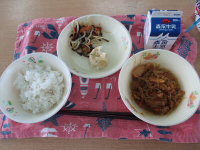 今日は中華メニューが並びました。マーボー春雨は、春雨とひき肉等を炒めた創作中華料理。家庭向けのお料理です。中華和えにはきくらげが入っていました。いろいろな食材を味わえるのが、給食のよさですね。