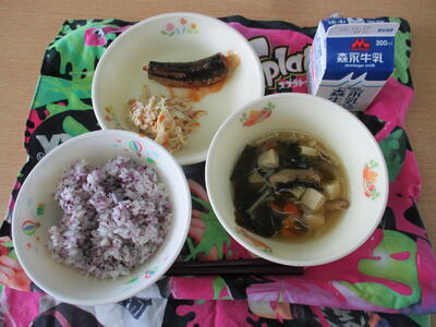 「ふのすまし汁」「いわしのかば焼き」「変わりあえ」「麦ごはん」でした。