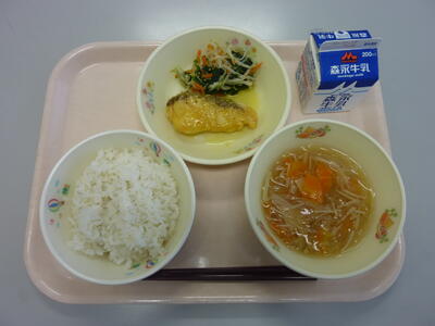 「はるさめ汁」「県産真鯛のみかんソースかけ」「ほうれん草ともやしのごま和え」「麦ごはん」でした。