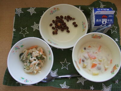 昨日10月10日は、目の愛護デーでだったことにちなんで、にんじん、ほうれん草といったビタミンAを多く含む野菜や、ブルーベリーが登場しました。10月生まれのみなさん、お誕生日おめでとうございます。
