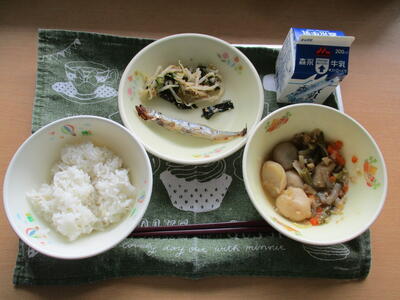 「里芋のそぼろ煮」「ししゃも香り焼き」「わかめのごま酢あえ」「麦ごはん」でした。