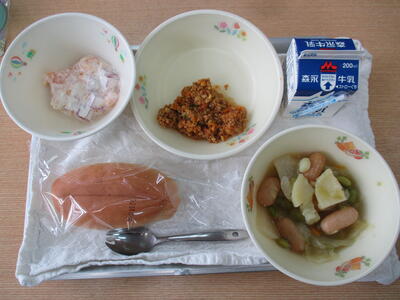 「ポトフ」「ドライカレー」「豆乳クリームあえ」「たてわりコッペパン」でした。