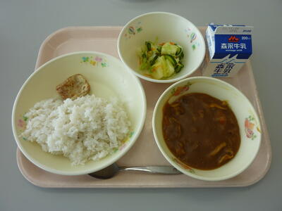 「秋野菜のカレー」「お魚ナゲット」「キャベツとリンゴのサラダ」「麦ごはん」でした。