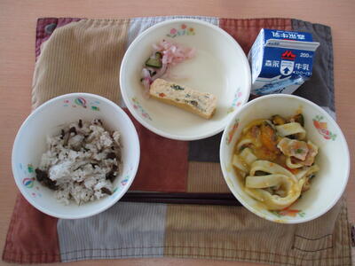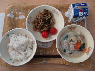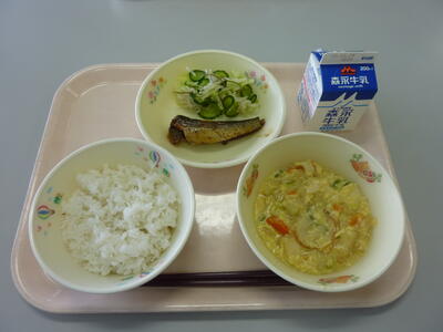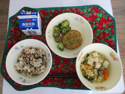 北風が急に冷たくなりました。こんな日でも、給食はホカホカの状態で届きます。いつも栄養まんてん、バランスのとれたホカホカの食事をいただけることに感謝して今週もいただきます。