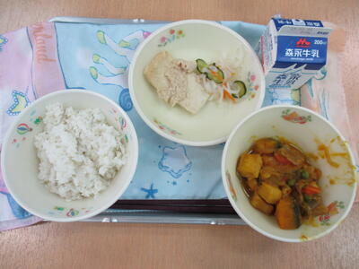「チキンカレー」「青のりマヨいりこ」「甘夏サラダ」「雑穀ごはん」でした。