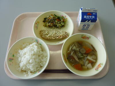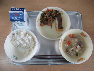 北風が急に冷たくなりました。こんな日でも、給食はホカホカの状態で届きます。いつも栄養まんてん、バランスのとれたホカホカの食事をいただけることに感謝して今週もいただきます。