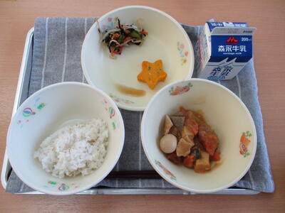 「チキンカレー」「青のりマヨいりこ」「甘夏サラダ」「雑穀ごはん」でした。