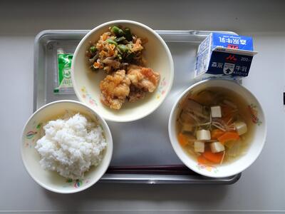今日のメニューは、麦ごはん、とうふ汁、チキン南蛮、千切り大根の炒り煮です。9月の「全国味の旅」は宮崎県。宮崎の特産品で日本一の生産量を誇る「千切大根」と、郷土料理である「チキン南蛮」を味わって食べましょう。