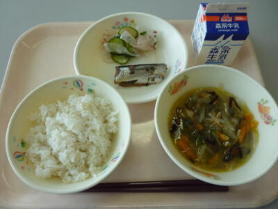 今日のメニューは、麦ごはん、牛乳、わかめスープ、鶏肉のマスタード焼き、春キャベツのサラダです。給食センターの調理機材の不具合により、鶏の唐揚げが鶏肉のマスタード焼きに変更されています。食物アレルギー等に変更はないようです。今日も美味しくいただきましょう。