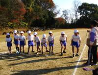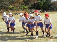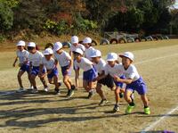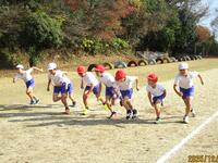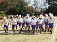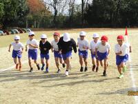 寒風の中、昼のランニングタイムに5分間走で汗を流す子どもたち。5分間走は、走るフォームが崩れにくく、心肺への負担も比較的少ないため、小学生に適した全身運動だと言われています。友だちと会話できるくらいのペースでも十分です。まずは、それぞれのペースで5分間を走りきることから始めましょう。