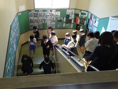 授業中に理科室から出火したとの想定で、避難訓練を実施しました。非常ベルが響き渡る中、全学年の運動場への避難が約4分で完了しました。災害は、いつ、どこで発生するか分かりません。一人一人が「自分の命を守る行動」がとれるよう、考えておきましょう。