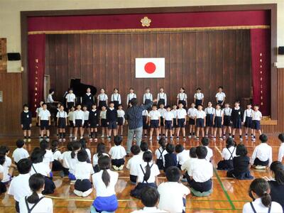 11月20日(水)の玉名市音楽会に向けて、音楽の時間や下校前に練習してきました。今日は、ゲストティーチャーをお招きし、指導をしていただきました。3、4年生ともに、随分と美しい歌声が聞かれるようになりました。今年は「にじ」「未来が生まれてる」の2曲を歌います。音楽会まで3週ほど、心を一つに練習に尾がんばりましょう。