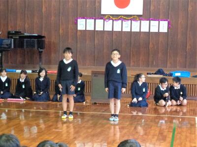 昼休み時間を利用して、5年生による「秋のコンサート」が実施されました。1年生から6年生、そして先生方と、大勢の観客が見守る中、音楽の時間に練習してきた合奏「キリマンジャロ」合唱「夢の世界を」を披露しました。5年生の皆さん、楽しい時間をありがとう。次のコンサートも楽しみにしています。