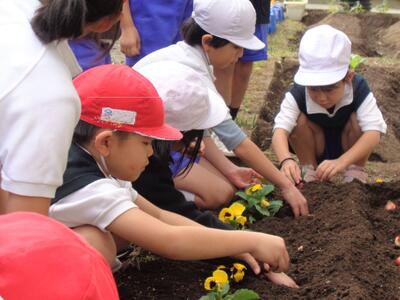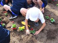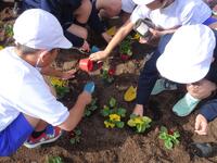 今年も地域の花づくり委員会の皆さんからパンジーの苗をたくさんいただきました。猛暑の中、委員会の皆さんが大切に育ててこられた立派な苗です。学年毎に花壇をデザインし、大切に植えました。4年生は慣れたもので、値をほぐしながらさっさと植え付けました。しっかり根付いて、きれいな花をいっぱい咲かせて欲しいですね。1年生はチューリップの球根も植えています。