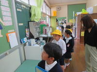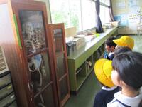 生活科の時間に、1、2年生合同で学校探検をしました。案内役は2年生です。事前に自分たちで準備した案内文を頼りに、職員室や事務室、校長室などあまり入らない部屋もゆっくりと案内して回りました。理科室では骨格標本や人体模型を見てびっくり。2年生の皆さん、ご苦労様でした。