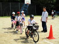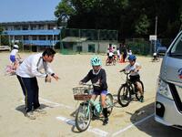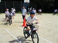 昨日、自動車学校から講師をお招きし、3年生の自転車教室を実施しました。講師のお二人から自転車の点検の仕方や安全な乗り方を学び、実際に乗車しました。小学生の事故の原因は安全確認不足によるものが多いようです。自転車の安全な乗り方を身につけ、交通ルールを守って乗るようにしましょう。ヘルメットは必ずかぶります。