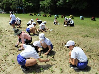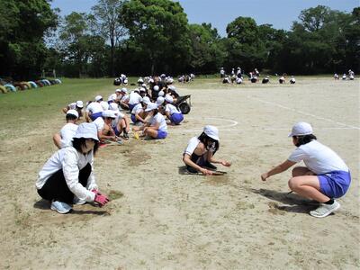 5月24日(土)の運動会に向けて、みんなで愛校作業(運動場の草取り)に取り組みました。暑い中、短時間でしたが、一生懸命に取り組む姿がたくさん見られました。まだまだ残っています。また、来週頑張ろう。